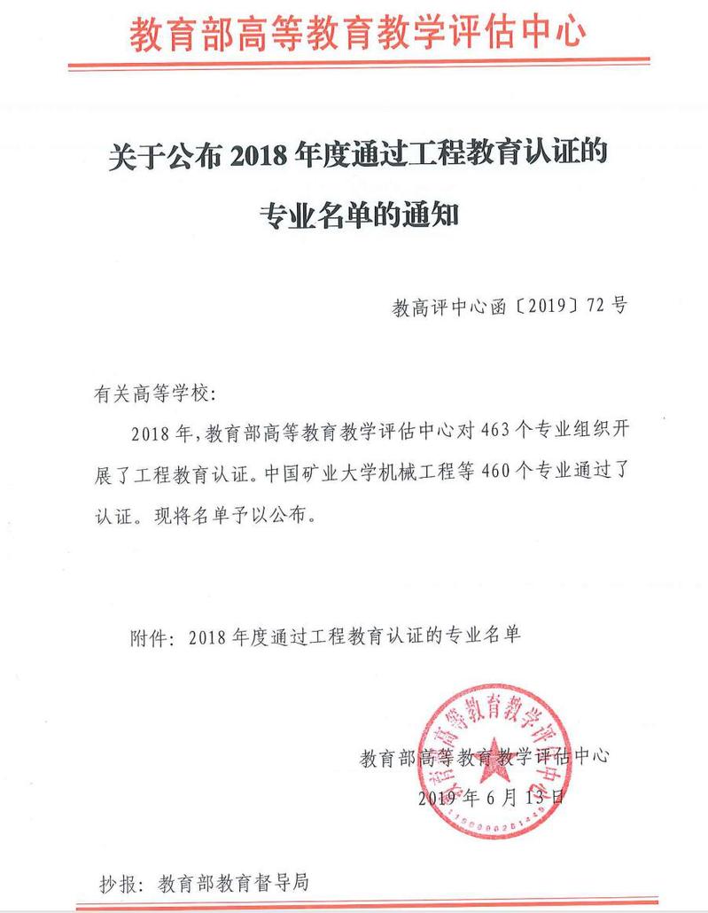 6月13日,教育部高等教育教学评估中心公布了2018年工程教育认证结果,tyc8722太阳集团城机械设计制造及其自动化专业正式通过工程教育认证,并获得六年最长有效期。通过认证专业的毕业生在《华盛顿协议》相关国家和地区申请工程师执业资格或申请研究生学位时,将享有当地毕业生同等待遇。进行专业认证就是要和国际进行接轨,提高教育质量。